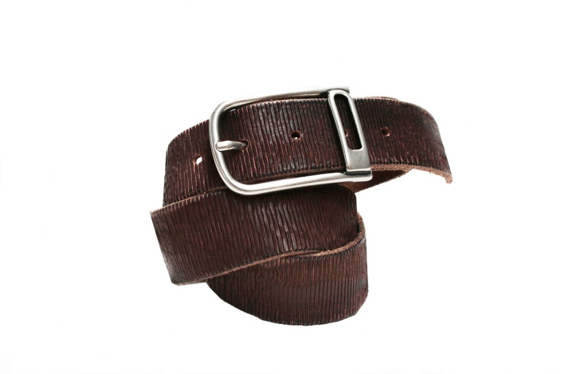 Cintura in Blade Slavato con superficie rigata ed effetto vintage. Pelle bovina conciata al vegetale, fibbia in zama e regolazione a vite. 100% Made in Italy.