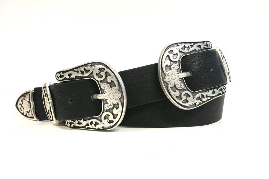 Cintura in vera pelle con doppia fibbia in metallo. Accessorio artigianale Made in Italy, perfetto per look casual, western e boho.