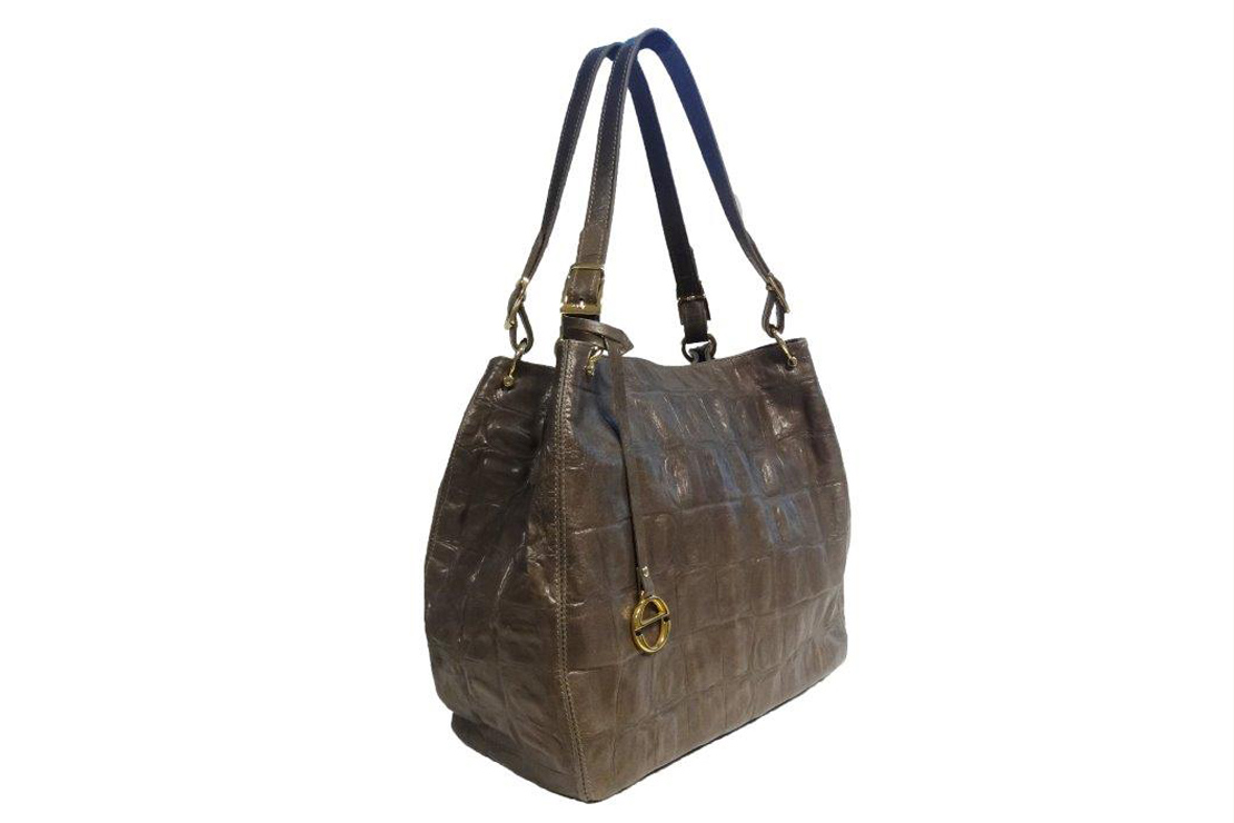 (Italiano) Borsa Agnese Cocco Fango in vera pelle di vitello con stampa cocco. Elegante e versatile, unisce linee raffinate e praticità quotidiana.