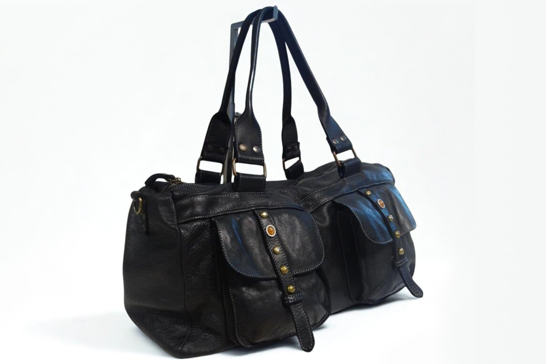 Borsa Gabriel Nero in vera pelle vacchetta tinta in capo con effetto vintage. Linee decise e dettagli artigianali per uno stile autentico e senza tempo.