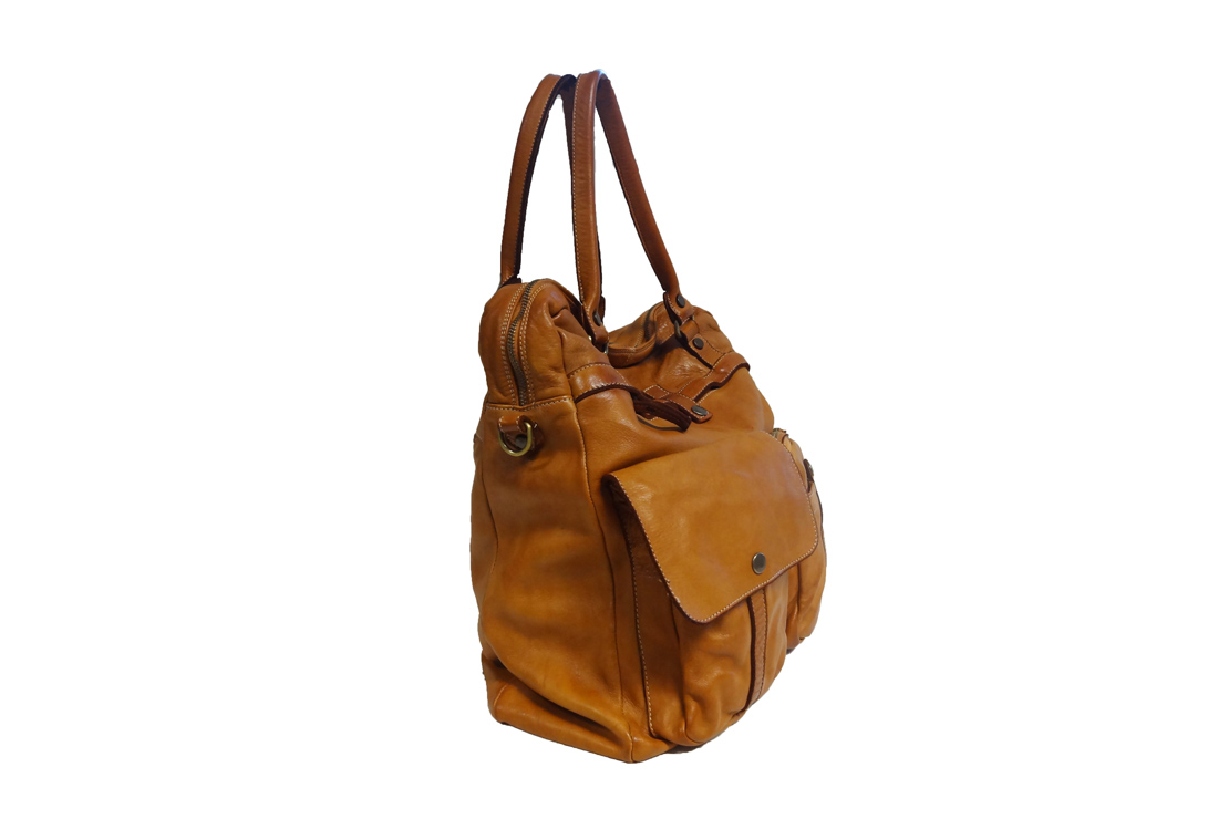 Borsa Raul Cuoio in vera pelle vacchetta tinta in capo con effetto invecchiato. Dallo stile casual e ricercato, unisce praticità e artigianalità Made in Italy.