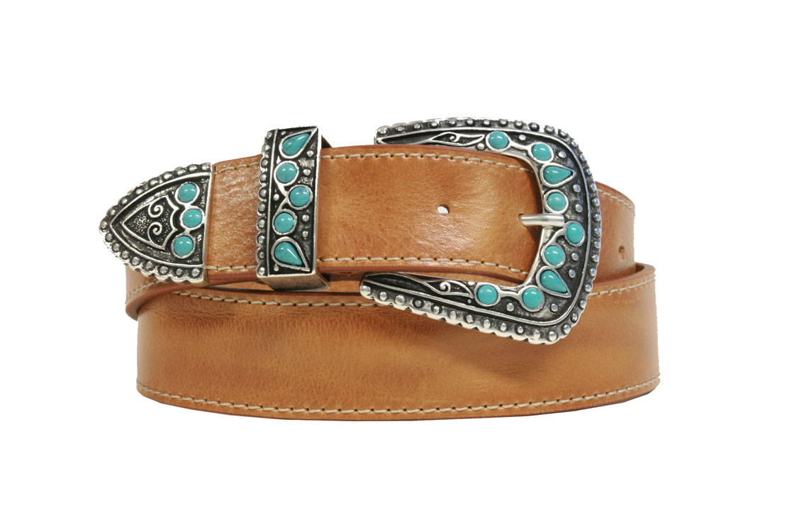 - Fibbia, passante e puntale con inserti turchesi