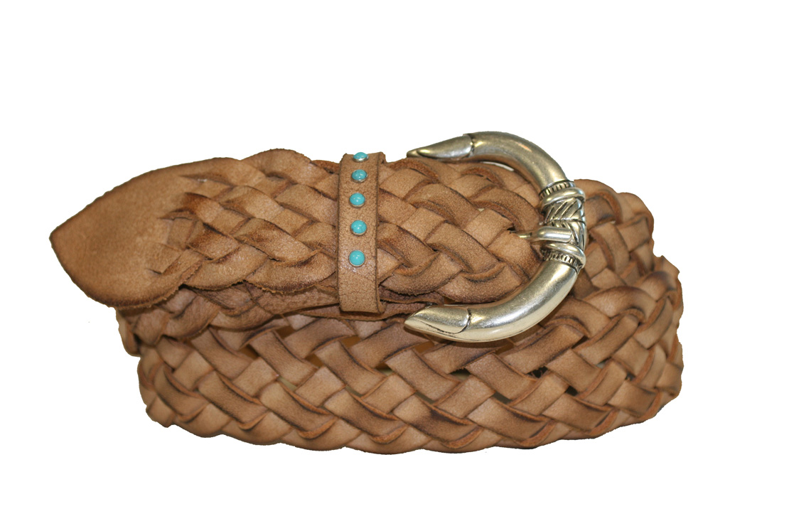 La Cintura intrecciata in vera pelle è un accessorio dal carattere artigianale e unico, realizzato con una lavorazione intrecciata che dona morbidezza e flessibilità. Il colore naturale del cuoio esalta la texture del pellame, mentre la fibbia argentata con dettagli incisi e passante decorato da piccole borchie turchesi aggiunge un tocco di stile boho-chic.