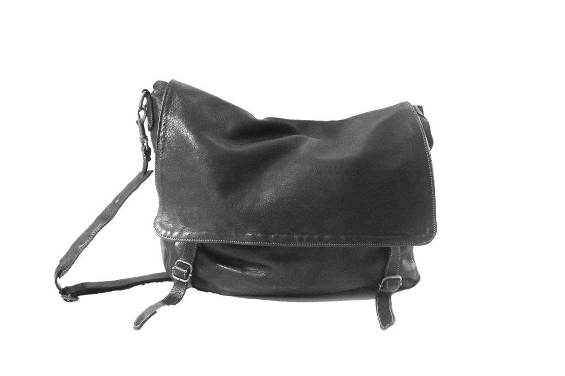 La grande patta frontale con doppia chiusura e la tracolla regolabile la rendono pratica e versatile, perfetta per l’uso quotidiano o per un look urbano raffinato. Ogni borsa è unica, frutto di una lavorazione artigianale che ne esalta l’autenticità e la durata nel tempo.