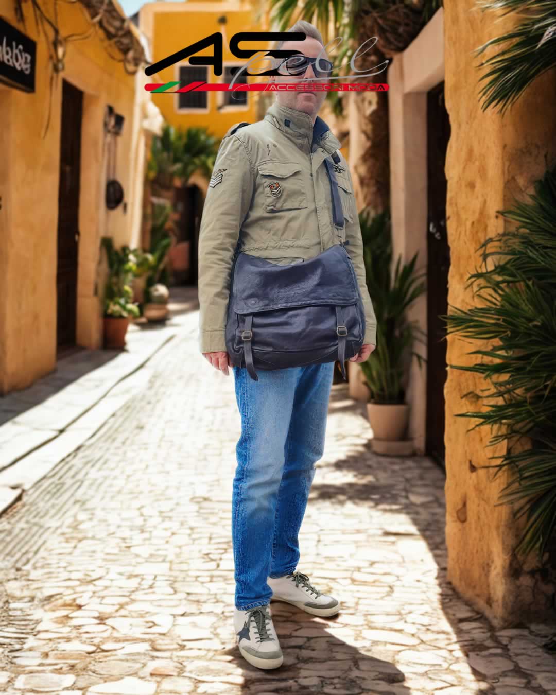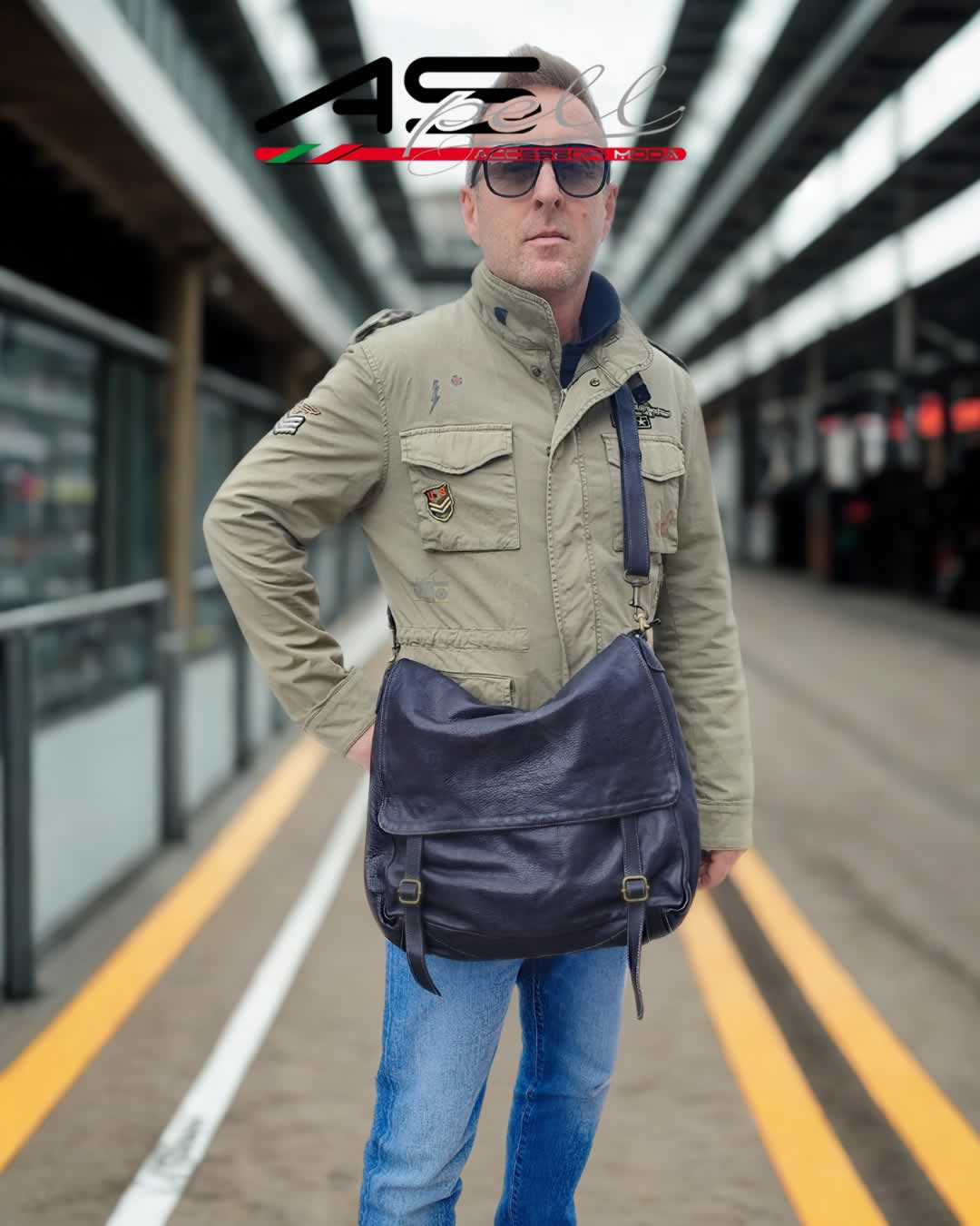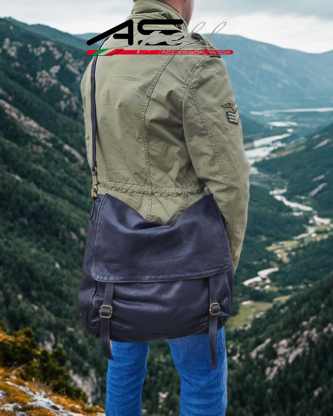 La grande patta frontale con doppia chiusura e la tracolla regolabile la rendono pratica e versatile, perfetta per l’uso quotidiano o per un look urbano raffinato. Ogni borsa è unica, frutto di una lavorazione artigianale che ne esalta l’autenticità e la durata nel tempo.